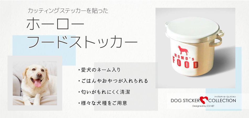 ステッカーデザインには「FOOD」「COOKIE」「ワンちゃんのお名前のみ」をご用意しております。